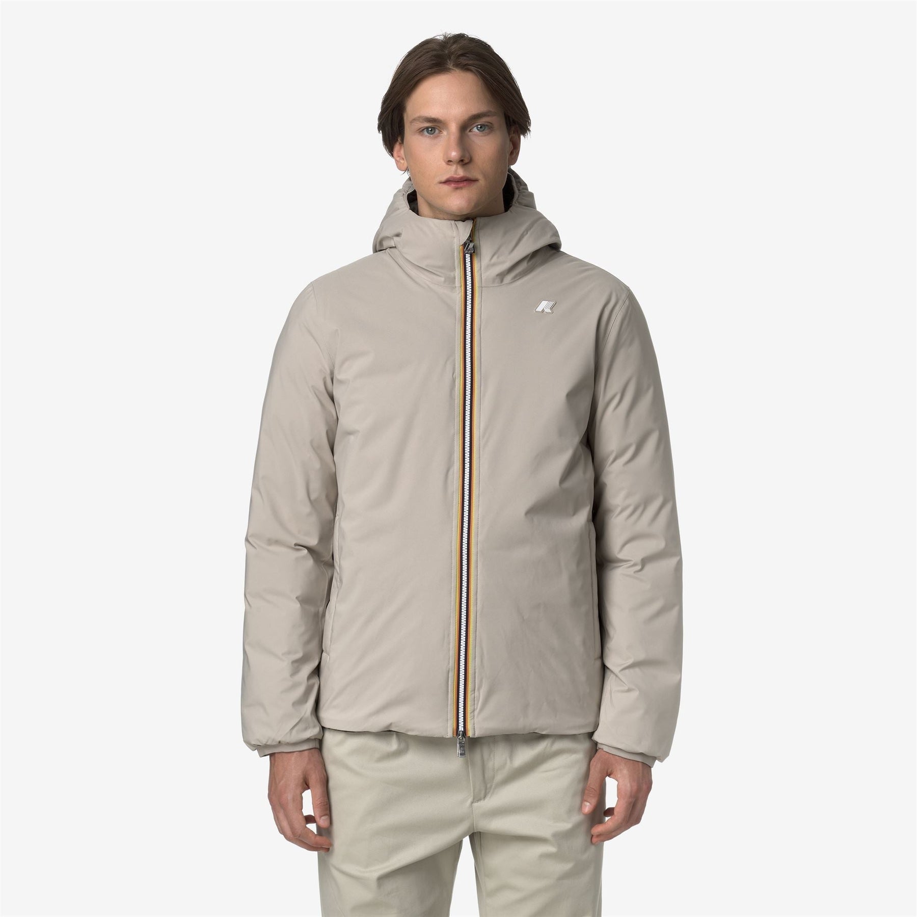 Conçu pour des températures hivernales extrêmes tout en respectant la planète, la veste courte pour hommes Jack est isolée avec du rembourrage en duvet : une fibre recyclée hautement isolante. Son design réversible combine un côté en tissu technique lisse avec un revers en nylon matelassé contrasté. Équipée d'une capuche, de poches, d'une fermeture éclair et d'un rabat tempête, ajoutant une touche ultra-fonctionnelle pour une protection maximale contre le froid.