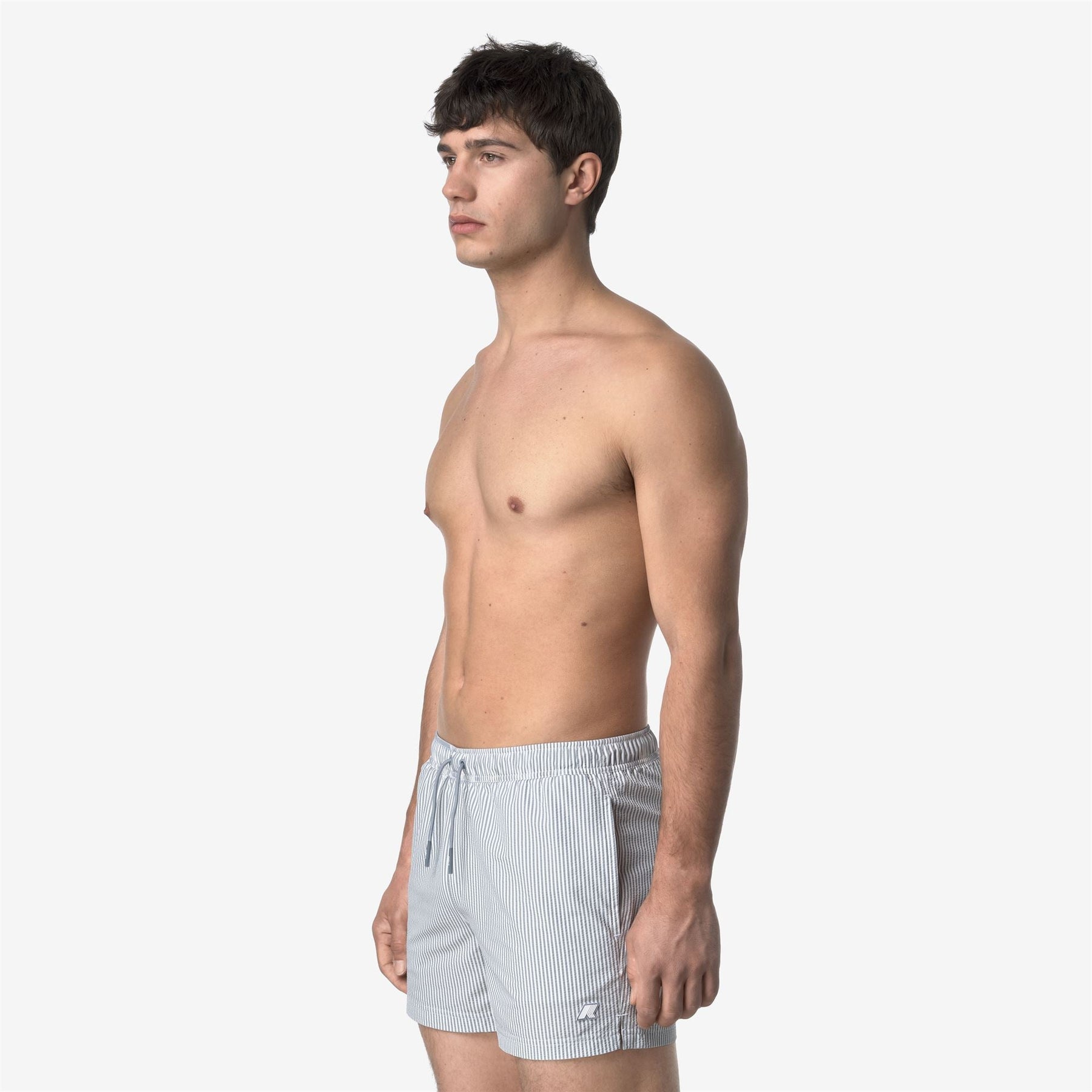 Les shorts de bain mid-length pour hommes Hazel affichent un look essentiel mais polyvalent. Ces trunks disposent de deux poches latérales et d'une à l'arrière, avec un détail en ruban K-Way. Fabriqué en tissu seersucker à rayures à séchage rapide, le vêtement présente également une taille élastiquée, des sous-vêtements en mesh et des évents latéraux permettant un mouvement sans restriction.