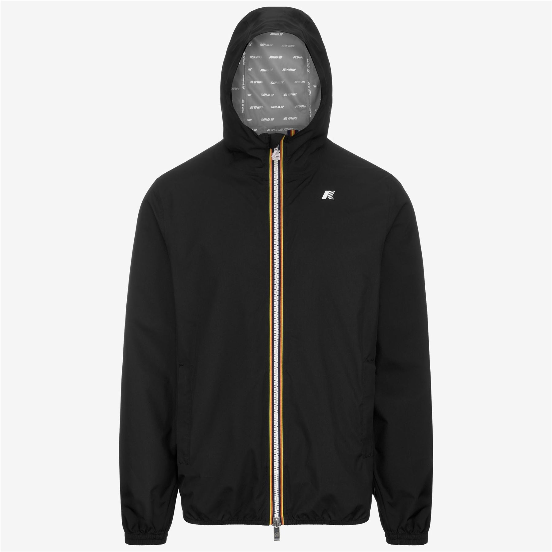 Jack est une veste courte pour hommes, parfaite pour les saisons de transition, avec une coupe slim. Elle est fabriquée à partir de tissu technique recyclé et stretch qui permet une grande liberté de mouvement tout en offrant une protection contre le vent et la pluie, avec une résistance à l'eau jusqu'à 5000 mm. L'intérieur est doublé d'une membrane isolante ornée du logo K-Way en argent imprimé partout. Des détails fonctionnels tels que des poches latérales zippées, une capuche enveloppante, des poignets et des ourlets avec des inserts élastiques assurent un ajustement sûr et confortable pour un port facile.