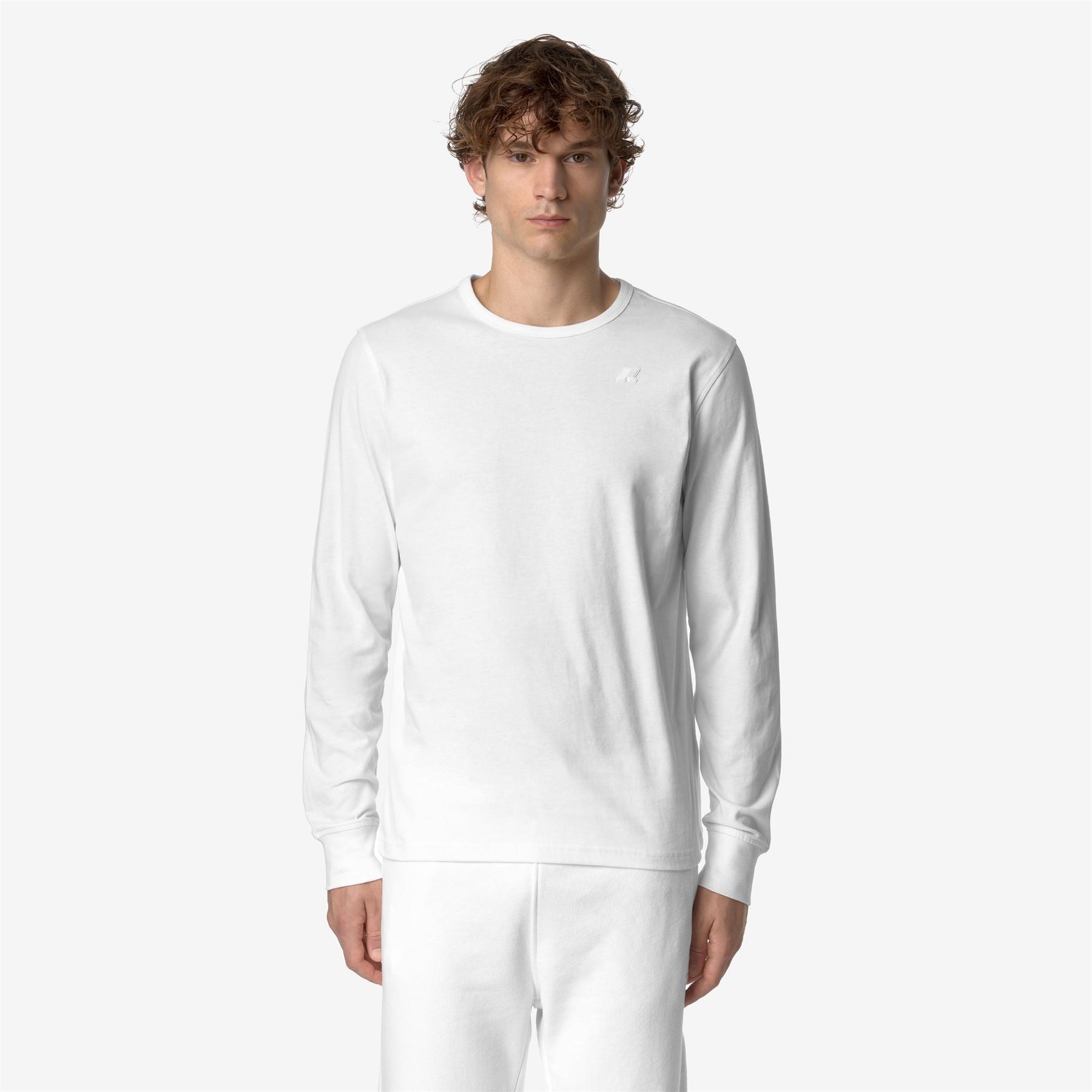 Elmer est un t-shirt manches longues pour homme présentant une coupe ajustée pour une look athlétique. Il est fabriqué d'un tissu jersey léger en coton pur. Ce vêtement, idéal pour les loisirs, arbore un col rond côtelé et une lettrage K-Way imprimé sur la poitrine.